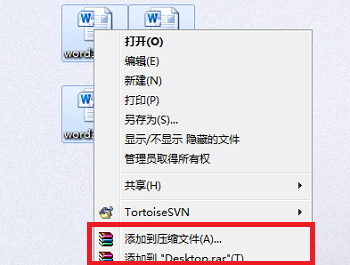选中要压缩的word之后在选中区域按下鼠标右键,出现很多选项,可以直接选中“添加到‘Desktop.rar’”,也可以选择“添加到压缩文件”。