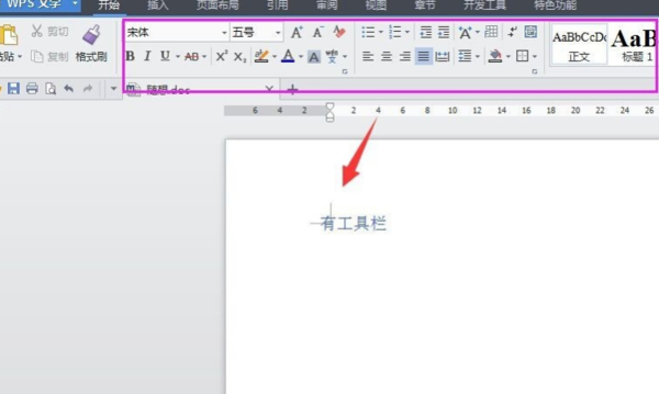 1、首先打开自己WPS的word版面,小编这时的工具栏是没有的。