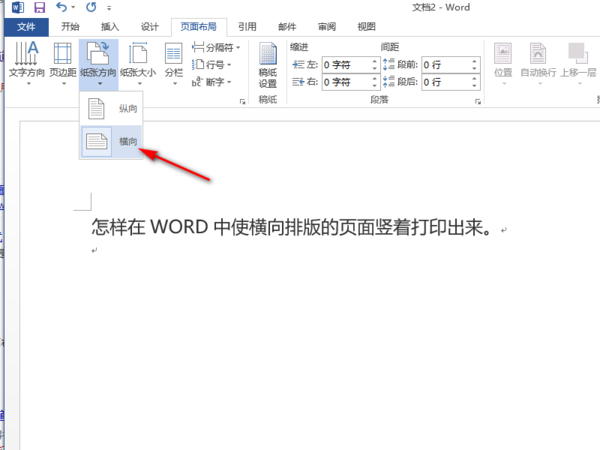 1、本次操作使用Office办公软件Word 2013版本,操作如何在Word文档中使横向排版的页面竖着打印出来。