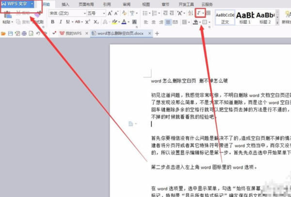 7、当然了wps文档遇到的空白页删不了的情况也是和word文档一样的,按照上面的方法还是可以删掉的。