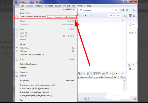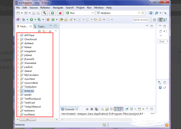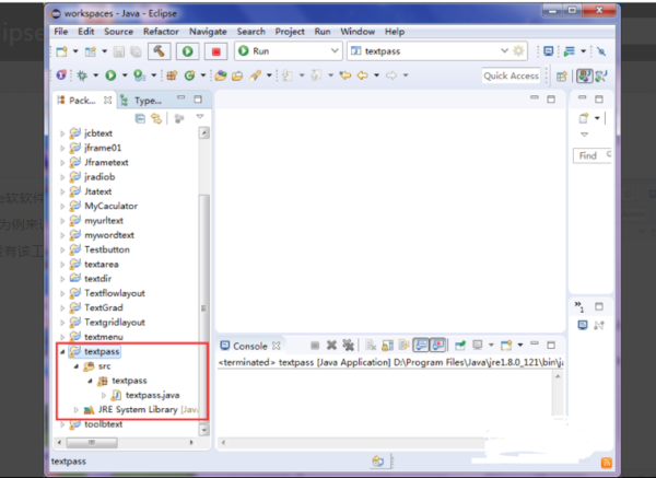 用eclipse打开并运行一个已经写好的java文件可以参考以下操作(以在eclipse中载入一个叫textpass的工程为例):