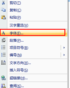 2、选择文字,右击-》字体;