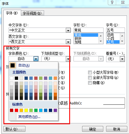 3、在弹出的窗口,选择所需要的字体颜色。