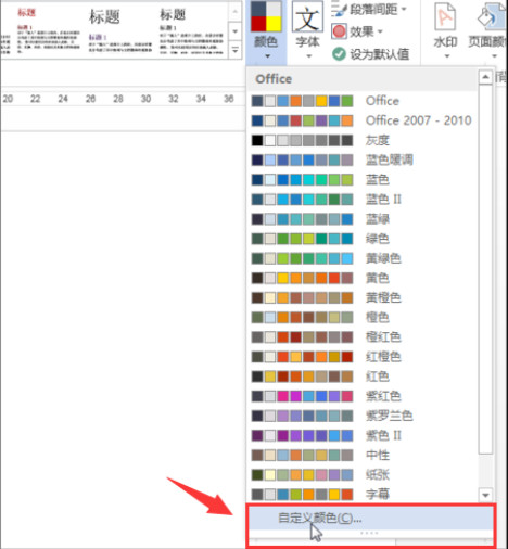 4、再点击该选项卡下的【颜色】下的【自定义颜色】。