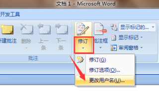 3、修改作者名称。点击修订按钮的下侧,选择更改用户名。默认是电脑登录的,管理员账号,可以输入汉字的名称。