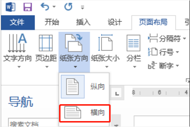 2、调整纸张方向。方法为:页面布局-纸张方向-横向。