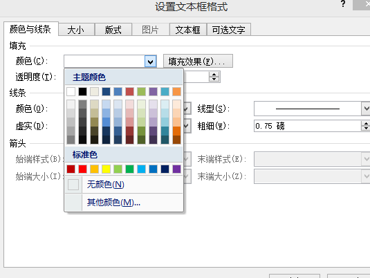 4、找到颜色与线条选项卡,然后把颜色设置成无颜色,还有下面的线条的颜色也设置成无颜色;