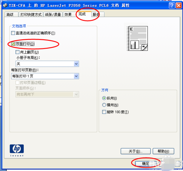 7、点击完成,在双面打印上打对勾,最后确定即可。