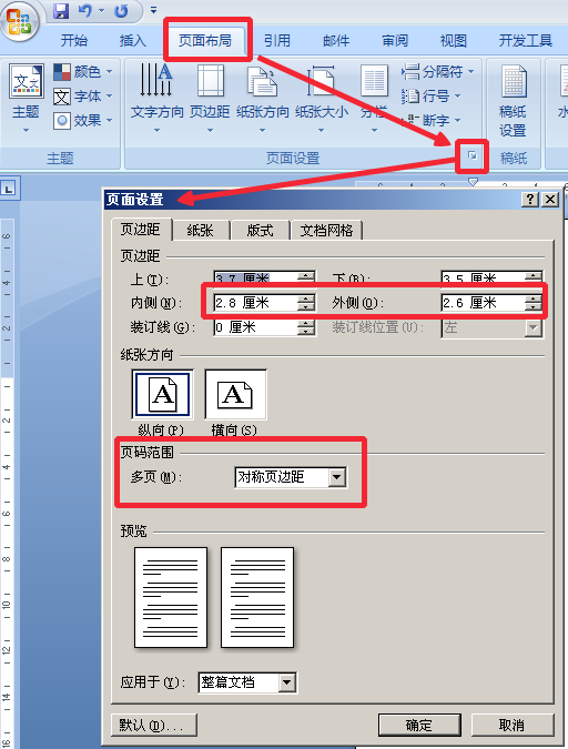 如果你的左右页边距不同,页码要在靠外面,就要在“页面设置”——页码范围中选择“对称页边距”。这样双面打印出来正反面版芯是对齐的。