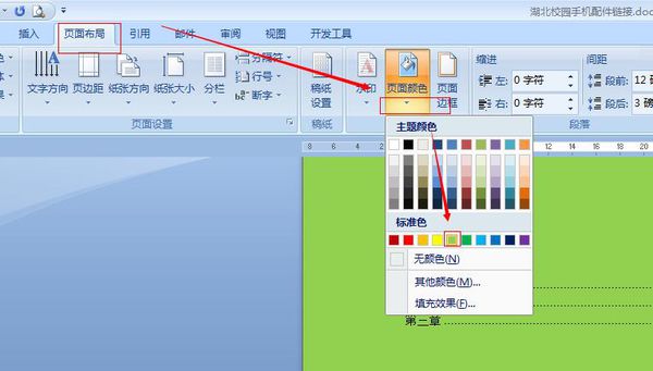 页面布局——页面颜色——选择需要的色彩,如图: