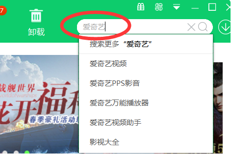 2、然后在页面的右侧找到搜索框,可以在其中输入需要下载的程序,例如搜索“爱奇艺”。
