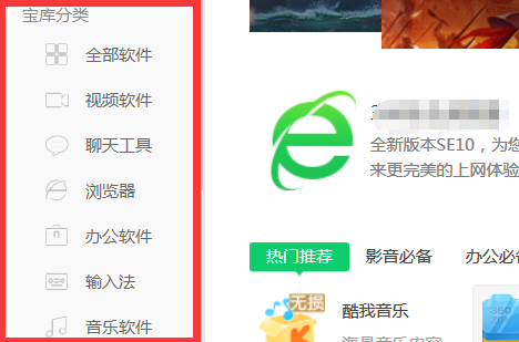 5、或者在软件管家的首页中点击左侧菜单栏中的“宝库分类”,即可根据分类寻找需要的程序进行下载了。