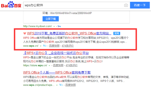 2,在WPS官方网站下方选择自己想要下载的办公软件的版本,点击下载。