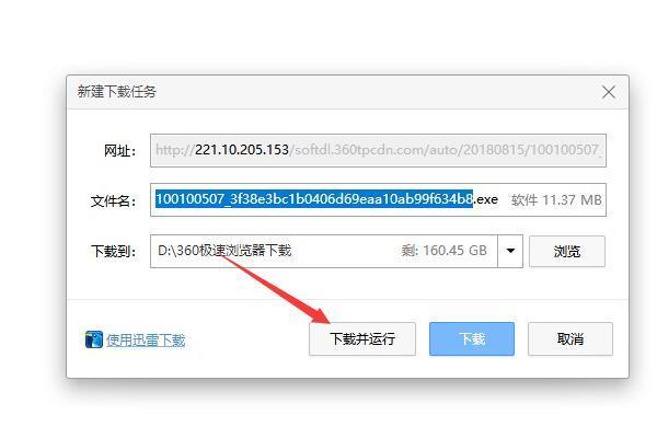 3.在弹出的对话框中选择保存的地址后,最后点击下载并运行。