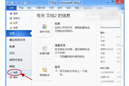 1、打开word2010,选择需要复制格式的文档,在菜单里找到文件选项,点击该选项在其内找到选项;