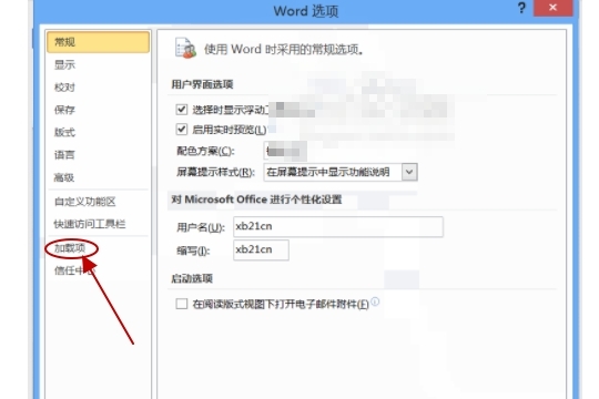 2、点击选项弹出选项对话框,在该对话框内我们找到加载项选项;