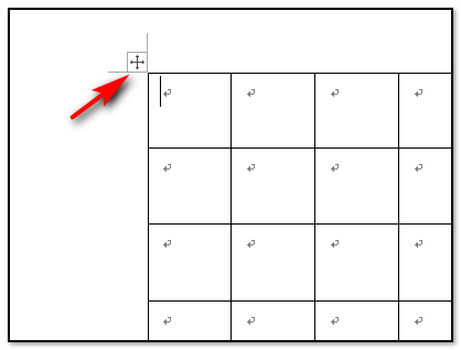 3、成功插入表格后,在将鼠标移动到表格的左上角看见有十字形的图标符号;