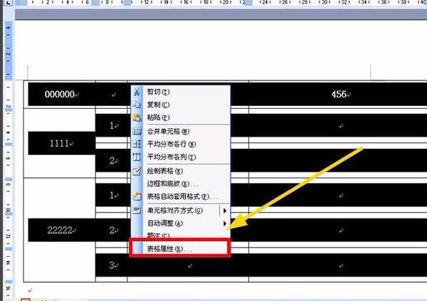 3、右键打开菜单,选择“表格属性”。