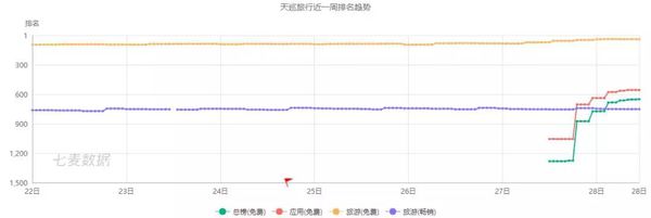 我们可以明显看到,通过 Today 的推荐, App 的排行有了明显的提高,在 28--29 日两天持续增长。(如下图所示)