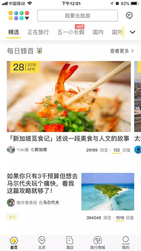 与其它网站和平台不同,「马蜂窝」的首页并没有做商城而是做攻略分享的平台,叫做“每日蜂首”。它把最好的位置全部留给能产生高质量内容的用户来以表对用户的尊重,这一点对很多用户来说是很受用的。能上到「马蜂窝」的首页这是一个相当有成就感的事情,因此大家都会精心挑选、修饰自己的照片和文字,只为博得更多人的青睐!这一点和抖音的模式很像,只不过一个利用文字的魅力,另一个是用短视频的效果。