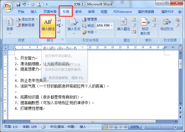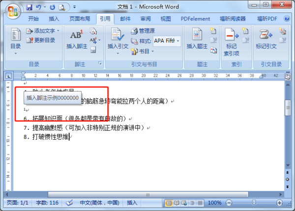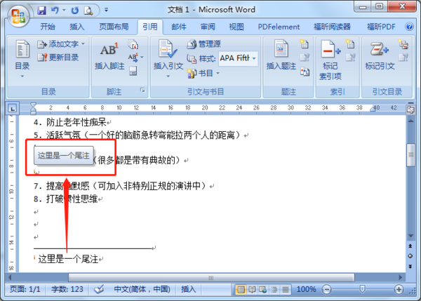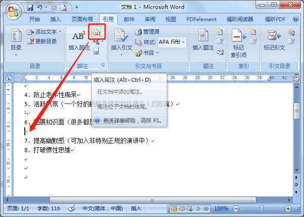2、为正文中的部分内容插入尾注。组合键为Alt+Ctrl+D。