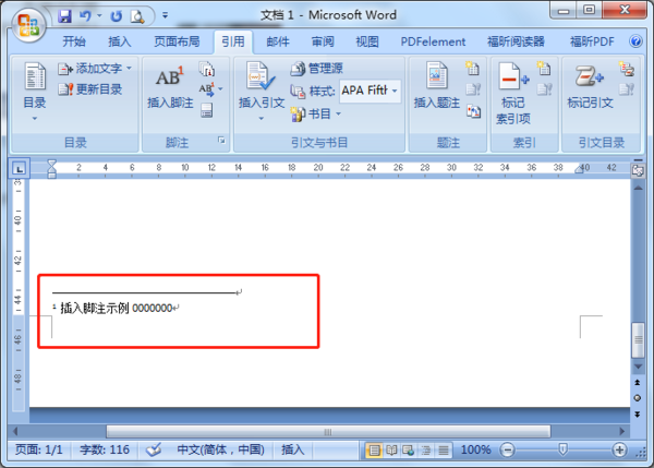 4、拉到页面底部,在同样的“1”后面输入脚注内容