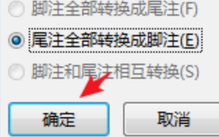 5、弹出尾注转为脚注的确认窗口,点击【确定】。