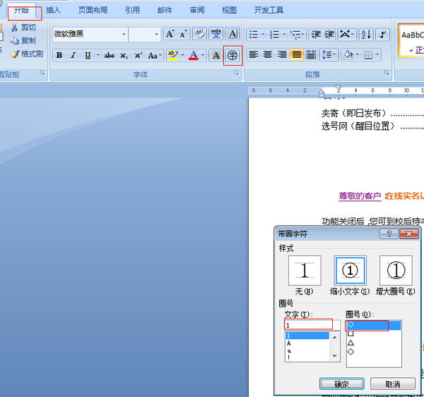开始——圈字——文字里输入需要的数字——圈号选择圈号格式,如图: