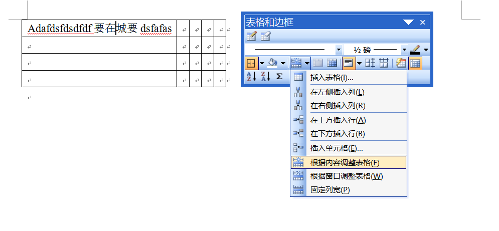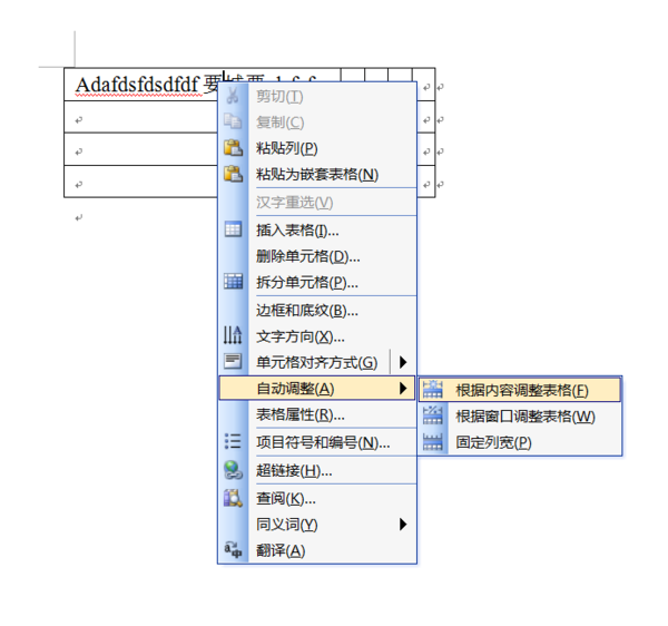 对于西文,按前面说的设置就可以了自动调整了,但对于汉字,还需要在表格的右键菜单中按下图选择“根据内容自动调整表格”
