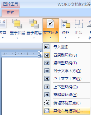 2、单击图片工具格式----文字环绕----其他布局选项;