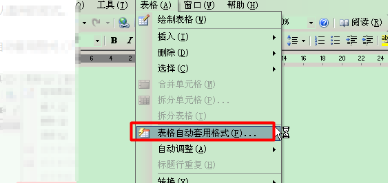 1、首先我们打开需要编辑的word文档,点击打开表格中的“表格自动套用格式”。