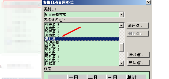在Word文档中设置表格样式为流行型的具体步骤如下: