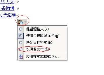 复制到word之后最下面有一个小方框点击选择仅复制文本