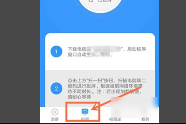 5、单击手机屏幕截播页面中的“扫描”按钮,然后使用它扫描计算机上的二维码。