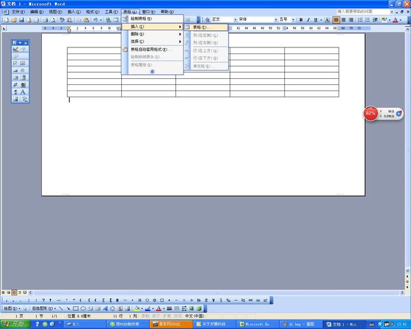 2、打开word文档软件以后,为了举例方便先在空白的文档中插入宽一点的表格;