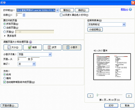二、打开所保存的PDF文件-打印-在要打印的页面那里选择所有页面-在调整页面大小和处理页面里选择小册子-小册子子集选择双面-在方向里选择纵向(重要:自动旋转每张纸中的页面这里一定要勾上,横着的表格才会正确的旋转,但有一点是你在WORD里排版的时候横版和竖版都要排正常,而且要加上页码)-打印出来就OK了