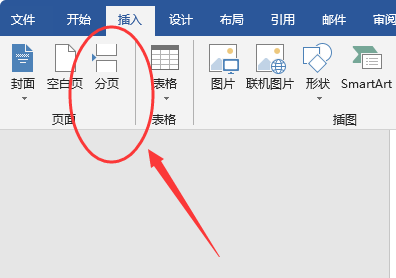 ①点击插入菜单,点分页按钮。光标将立即跳转到下一页