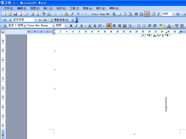 2、双击页面的右下角,光标即定位在那里,然后,按回车键直到换页,如图所示