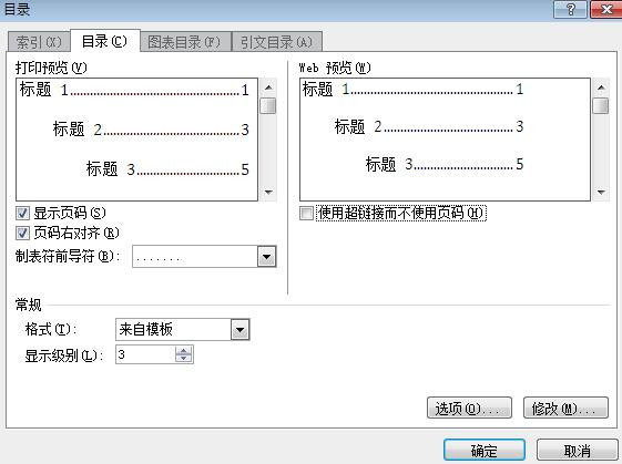 2、点“插入/索引和目录/目录”,在出现界面上在显示级别栏选定顶级别确定目录是几层;选择“显示页码”、“页码右对齐”及虚线样式等。