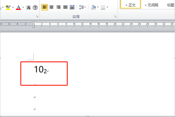 3、如下图,就会看到数字2变成上角标了;