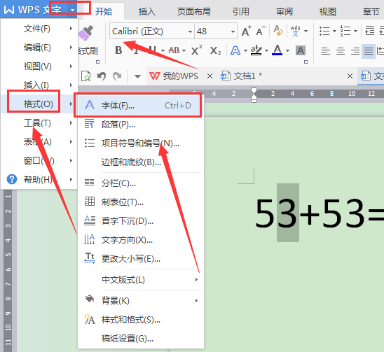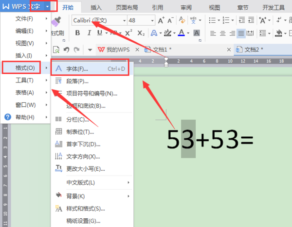 2.点击菜单栏的格式再点击字体