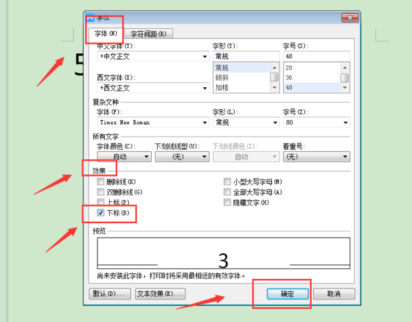 选下标,打勾,然后单击“确定”