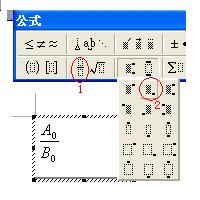 先点输入分数B0分之A0,再选中0,点击第二行第三个“上标和下标模板”