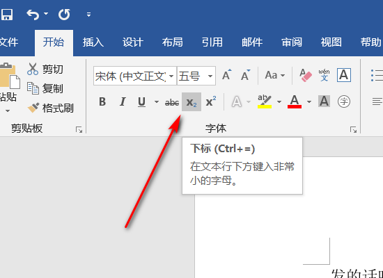 4、在word界面上方中点击“下标”按钮,即可自动写入下标。