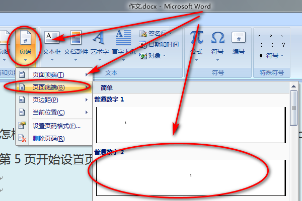 以word2007为例,从“指定页”开始输入页码的方法: