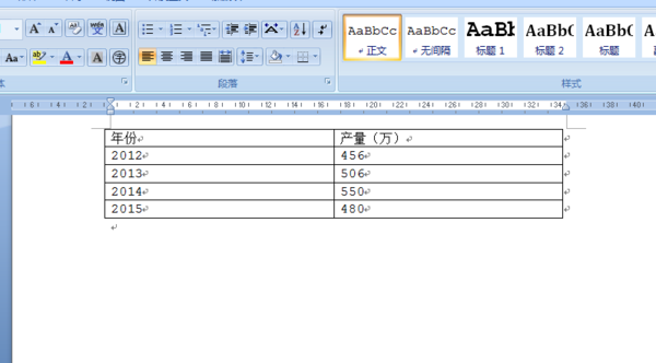 1、我们先在Word中,插入表格,并填入相应数据,如下图: