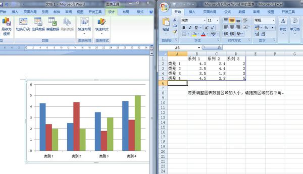 在word2007中,怎样双击里面的柱形图之后,直接在word中打开exce表格进行修改。