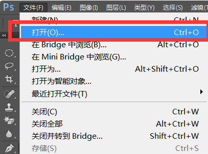 2、然后打开Photoshop软件,点击页面左上角的“文件”选项,并点击其中的“打开”按钮。