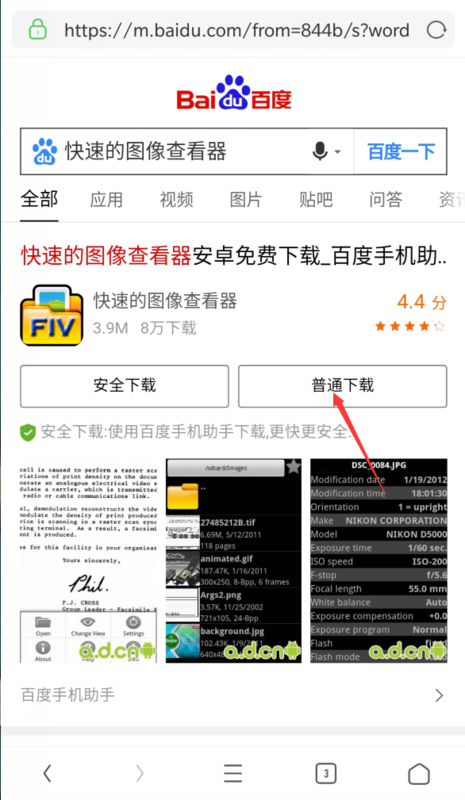 1、打开手机浏览器搜索,“快速的图像查看器”。