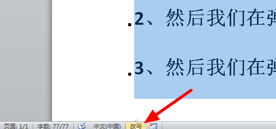 2、之后在Word文档页面左下角找到“改写”选项,如下图: